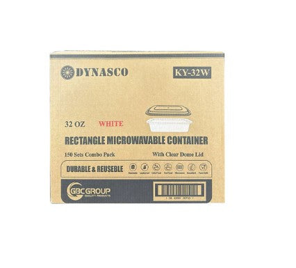 32oz White Rectangular Microwavable Container With Lid 150/Case